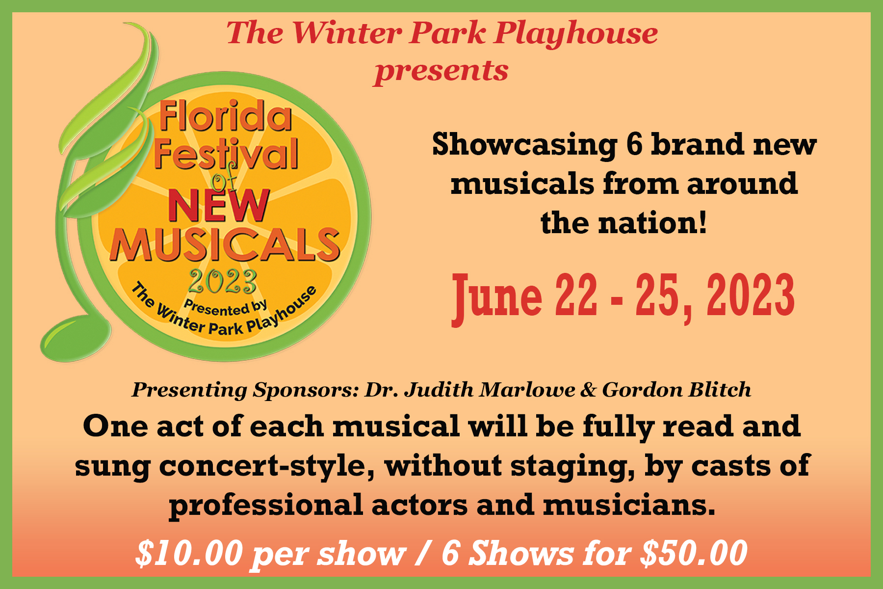 The purpose of the annual international festival is to advance and elevate the original American art form of musical theatre by fostering the development of new musicals and the artistic growth of writers and composers. The Florida Festival of New Musicals is a 4-day event that showcases six brand-new, never-before-produced musical works and brings together writers and composers with patrons, artists, press, producers and directors. The first act or one-hour version of each selected musical will be fully read and sung concert-style, without staging, by varying casts of professional actors and musicians. The festival is led by Playhouse Artistic Director Roy Alan. It is the only one of its kind in the region, similar to musical theatre festivals featuring new works that take place in New York City, Seattle, Chicago, Washington D.C. and Los Angeles. It provides a unique insight into how a new musical comes to life. Along with members of the artistic community, the general public is encouraged and invited to attend and be engaged in this unique and exciting theatrical experience. New musical submissions from writers and composers around the country are accepted each year from July to September. Each submitted application is read, evaluated and critiqued by a panel of industry professionals. The panel makes their final selection of six musicals in early spring. |