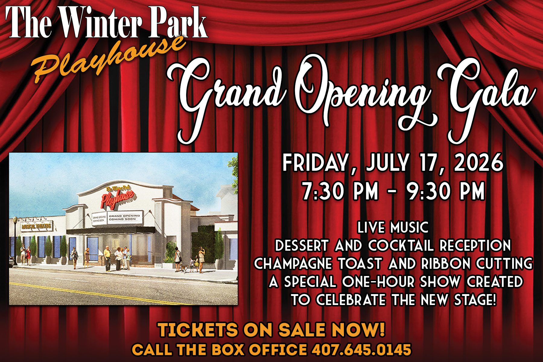 The Winter Park Playhouse will return to its home at 711 N. Orange Avenue in Winter Park this summer and open the doors to a completely renovated theatre. The building purchase and renovations were made possible by a generous grant from Orange County. The facility will boast increased seating capacity (from 123 to 172), a larger stage, dedicated cabaret space, expanded restroom facilities, and a renewed lobby.